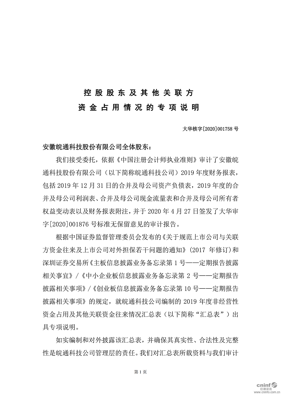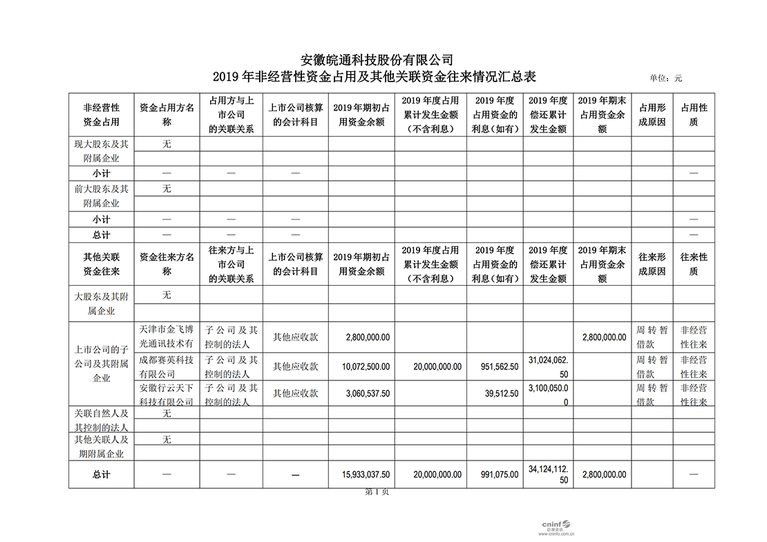 皖通科技:控股股東及其他關(guān)聯(lián)方資金占用情況的專項(xiàng)說明(1)